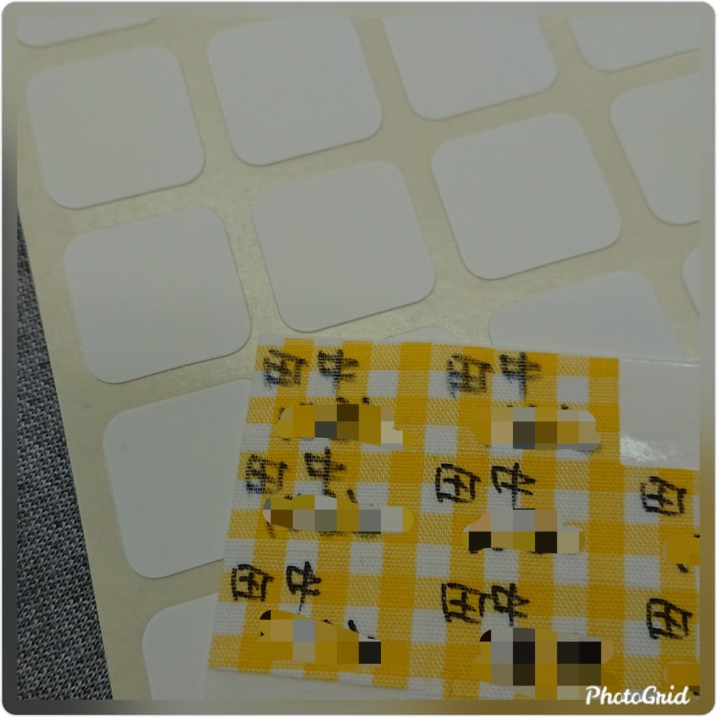 そんな時、100円ショップなどで売られている“お名前シール”が活用できます。服のタグなどにも直接貼れるもので、子供の入園・入学時などによく使われています。デザインも色々で、シンプルなものもあります。そのまま洗濯もできます(時々はがれていないかだけ、チェックした方が良いかもしれません)。服の色や書く場所などに困らず、活用できると思います♪