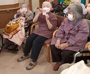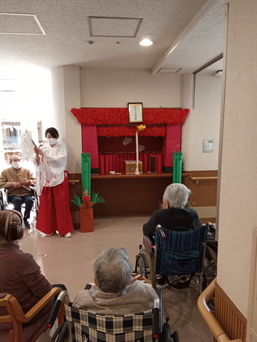 元旦には巫女さんに扮した職員と皆でお参りし、おみくじを引き今年の1年を占いました。